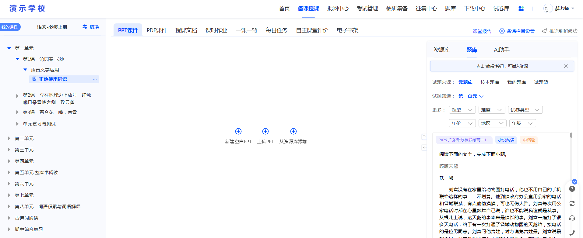 1)根据用户权限显示步步高、创新设计及数字校本的推荐课程。可以根据年份、版本、模块筛选推荐课程。可在书名处编辑课程名称。