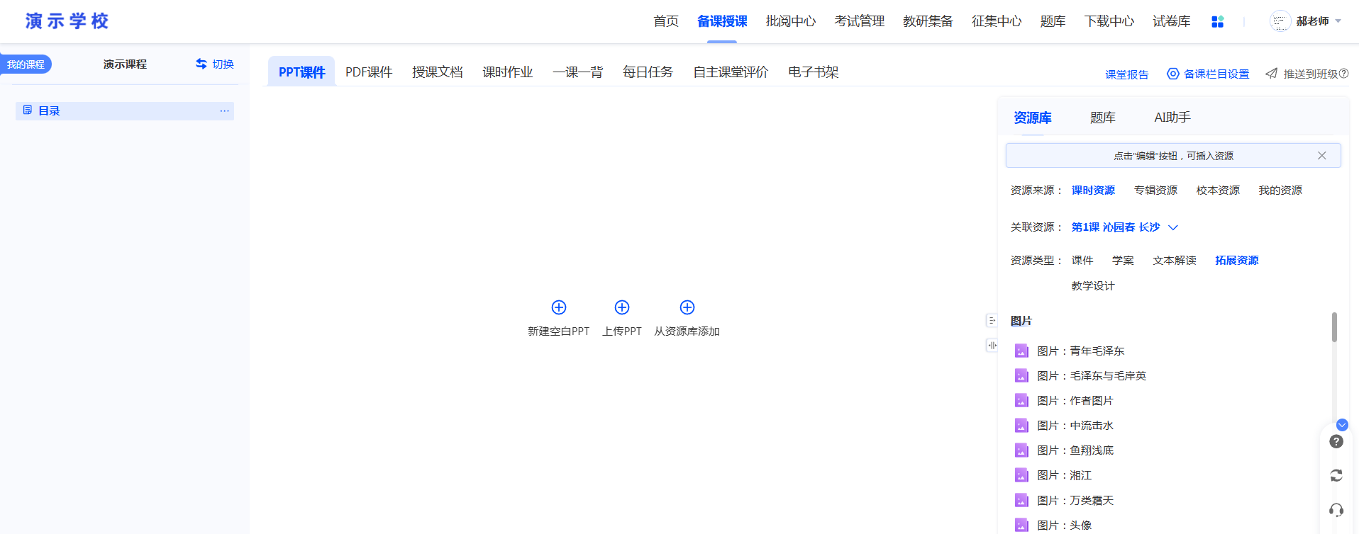 通过此方式建立的课程,包含目录,目录下对应的推荐资源会根据选择一并同步。包含配套资源与拓展资源。