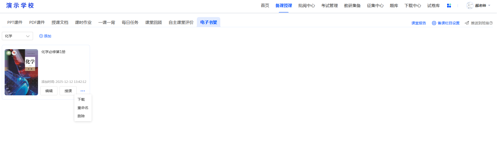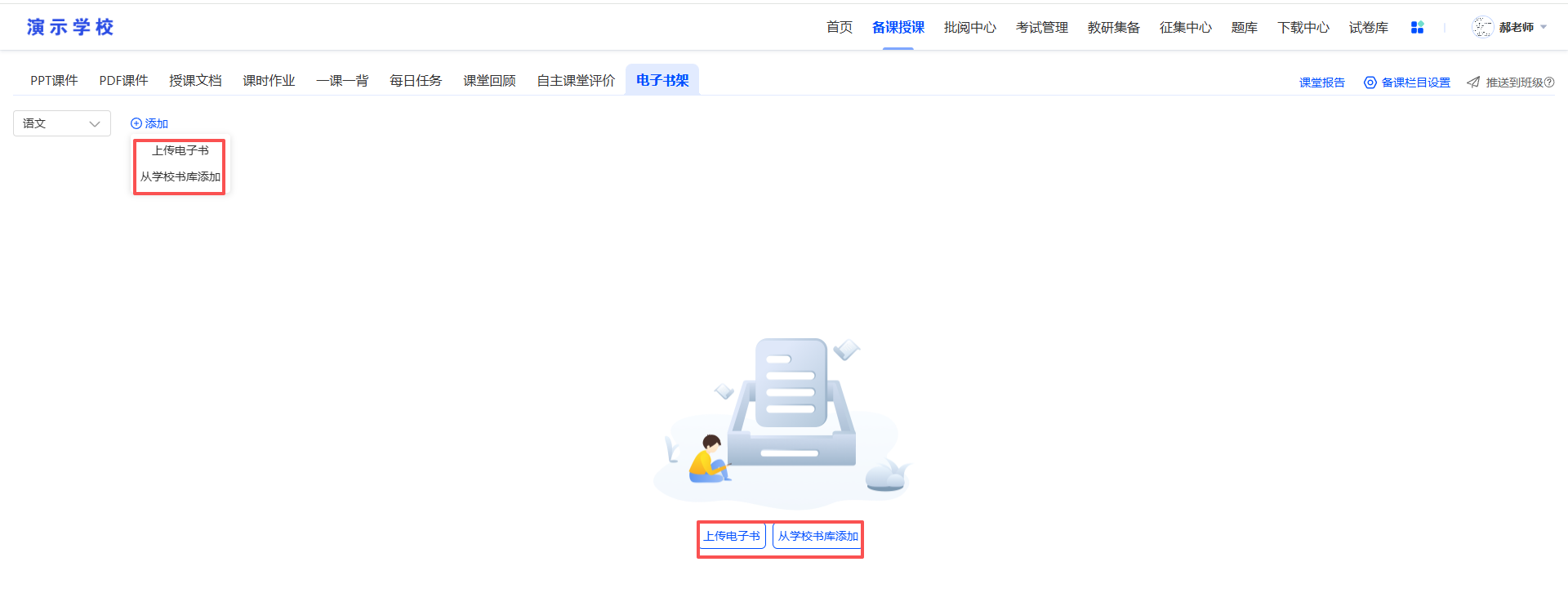 教师可以自行上传个人电子书也可以引用学校书库的电子书