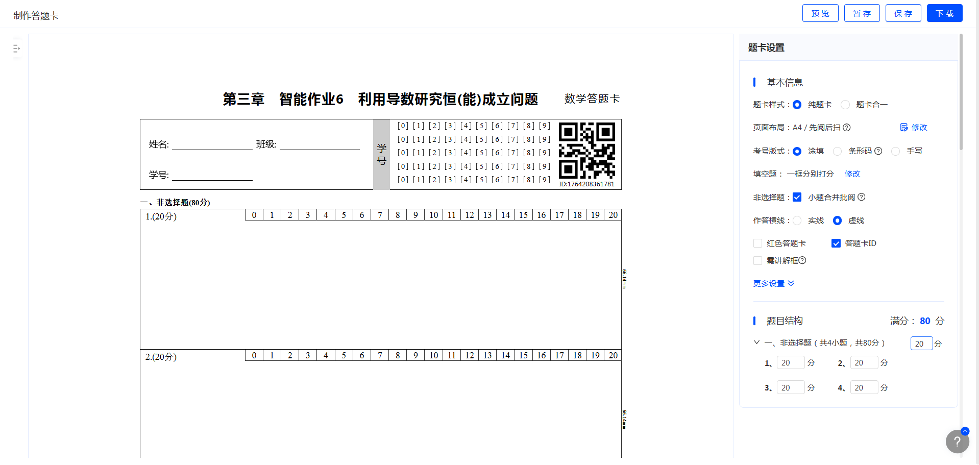 完成后点击【制作答题卡】可为试卷制作答题卡。