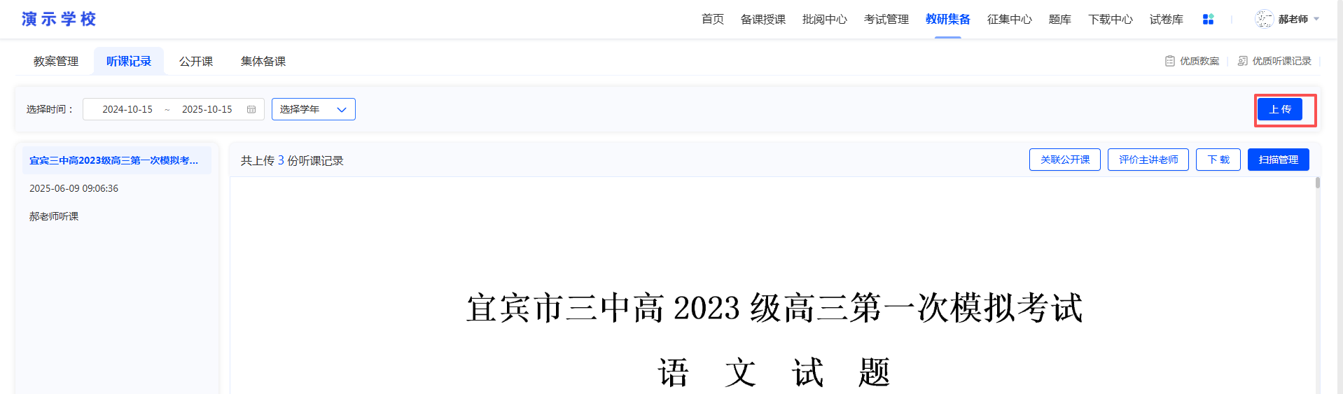 进入网页端“数字教研——听课记录”可进行记录的管理。