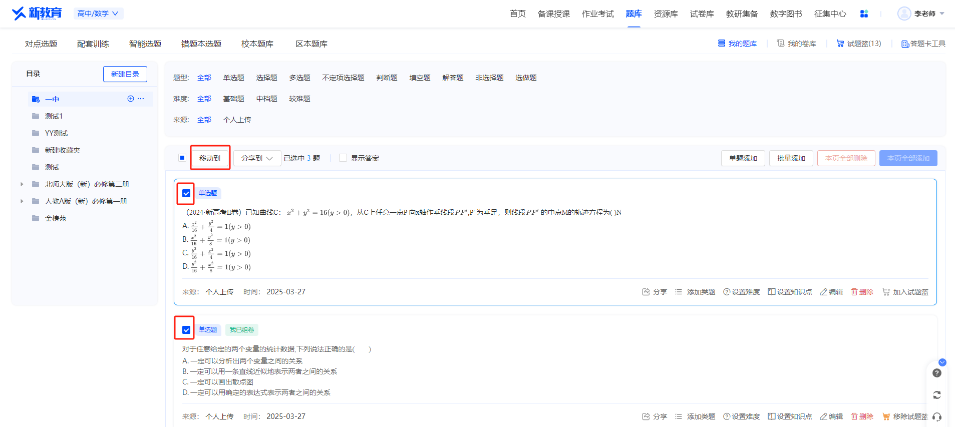 我的题库新增功能:可以移动题目或管理目录层级,快来试试吧!