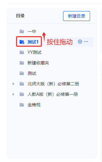 对于已经建好的目录,如果需要调整目录的层级和结构,按住需要移动的目录,再拖动到相应的新目录上,使其