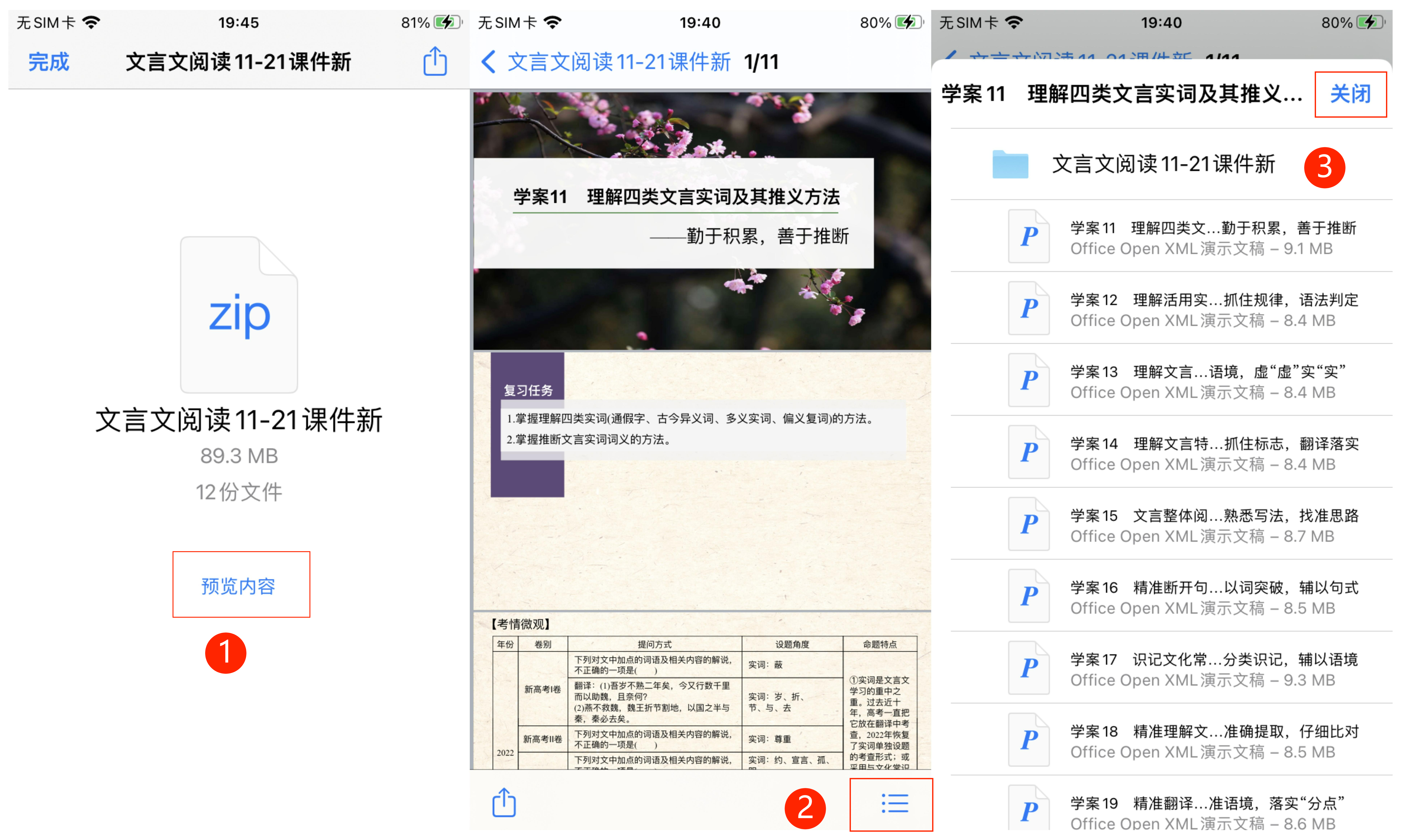 - iOS端可点击【预览内容】,可查看文件内容及列表;