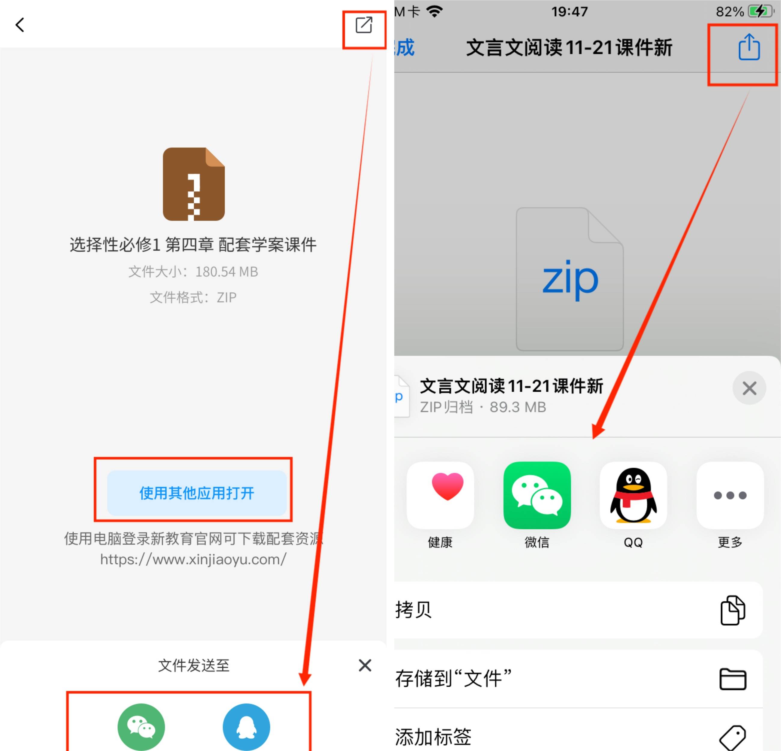 - 安卓端可点击【使用其他应用打开】;
