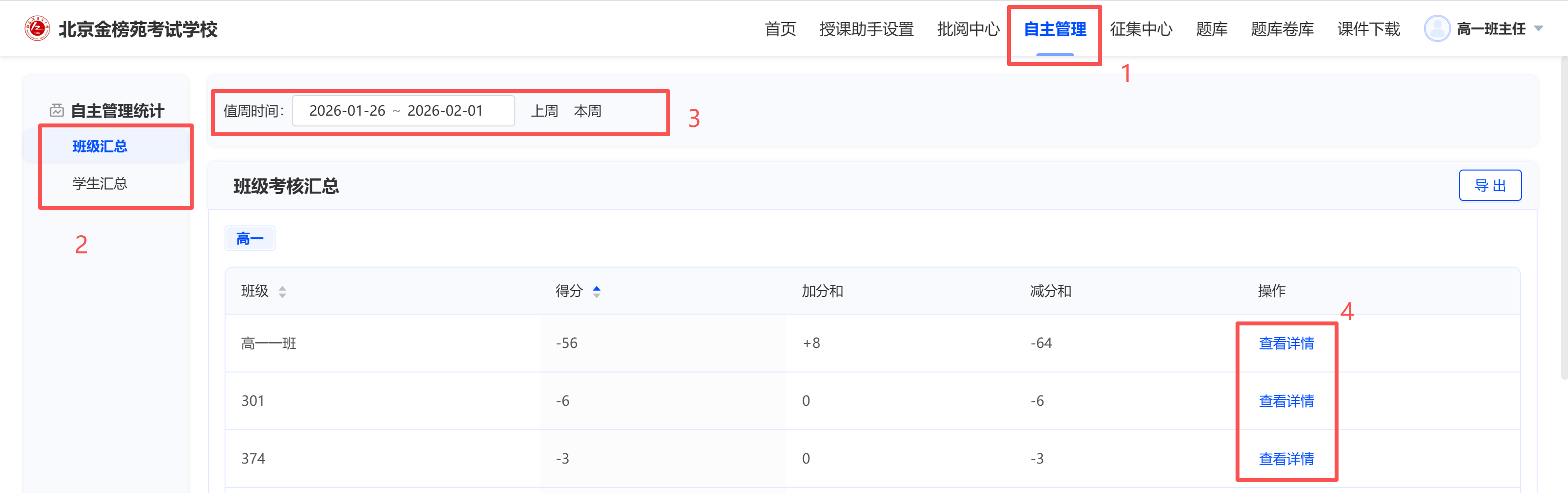 2.路径:自主管理-->班级汇总/学生汇总