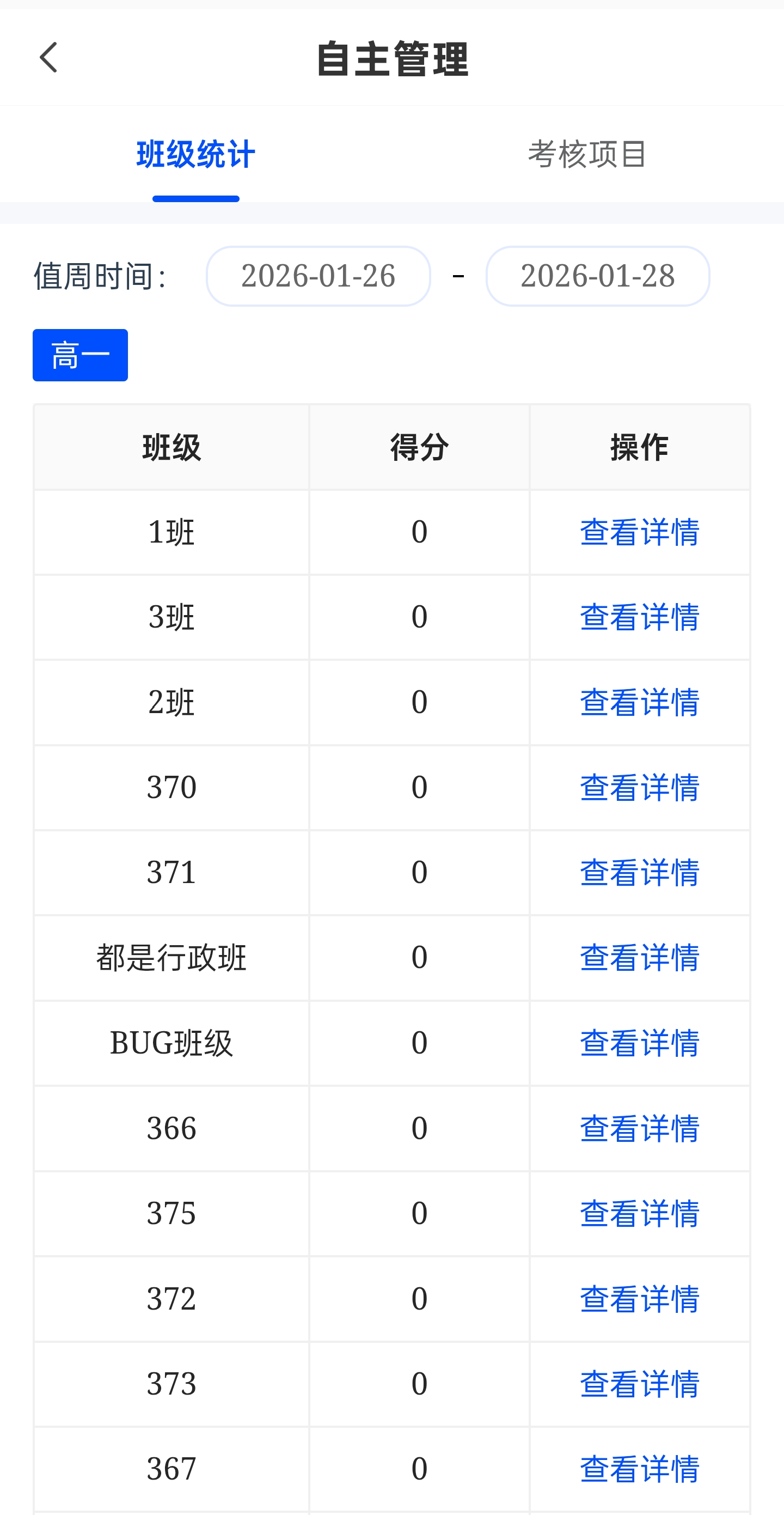 3.【班级统计】可查看到自己所任班级的得分情况,点击【查看详情】可看到考核详情;