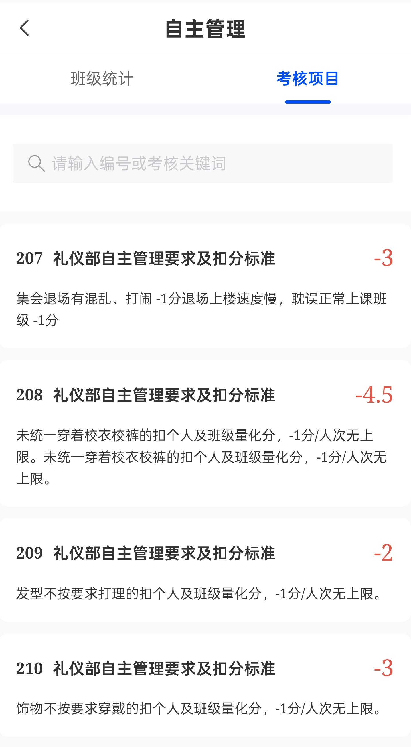 4.【考核项目】可查看所有自主管理的考核内容;