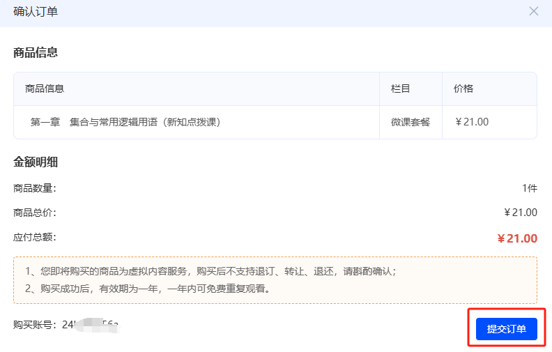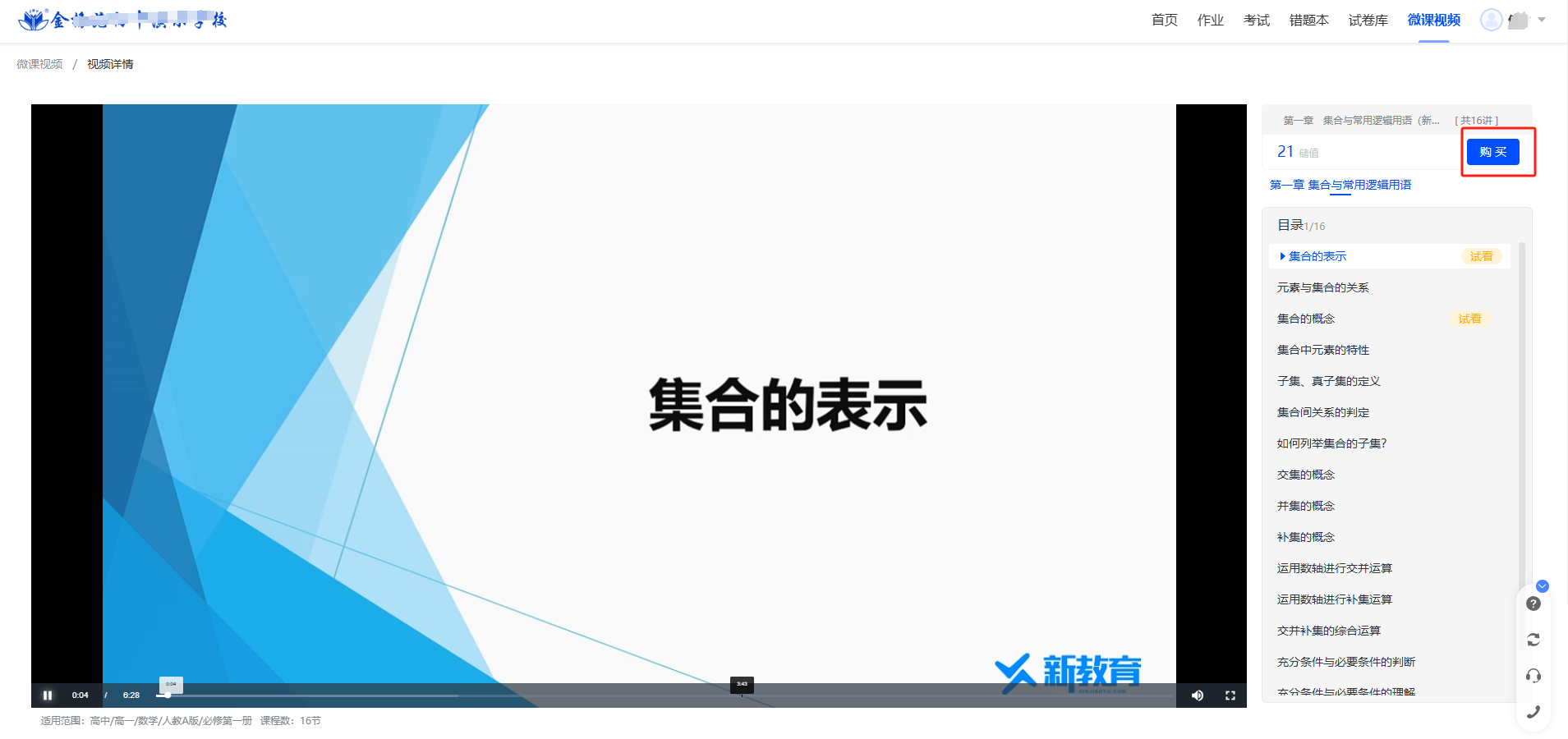 进入视频页面,若已购买可直接进行观看;若未购买可试看部分视频;