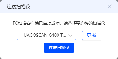 在扫描管理页面,点击【启动PC扫描客户端】,此时若未安装客户端,按照提示点击【下载PC扫描客户端】。下载、安装成功后,选择需要链接的扫描仪,如下图: