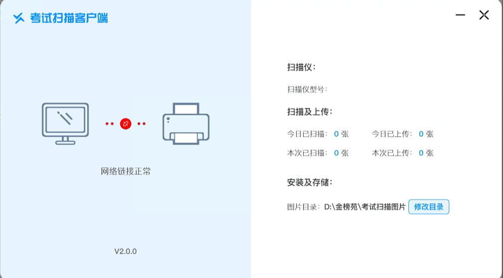 点击【开始扫描】,即会调动扫描仪驱动开始扫描答题卡。