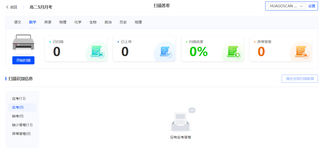 点击对应学科后的【开始扫描】按钮,扫描仪开始扫描工作。