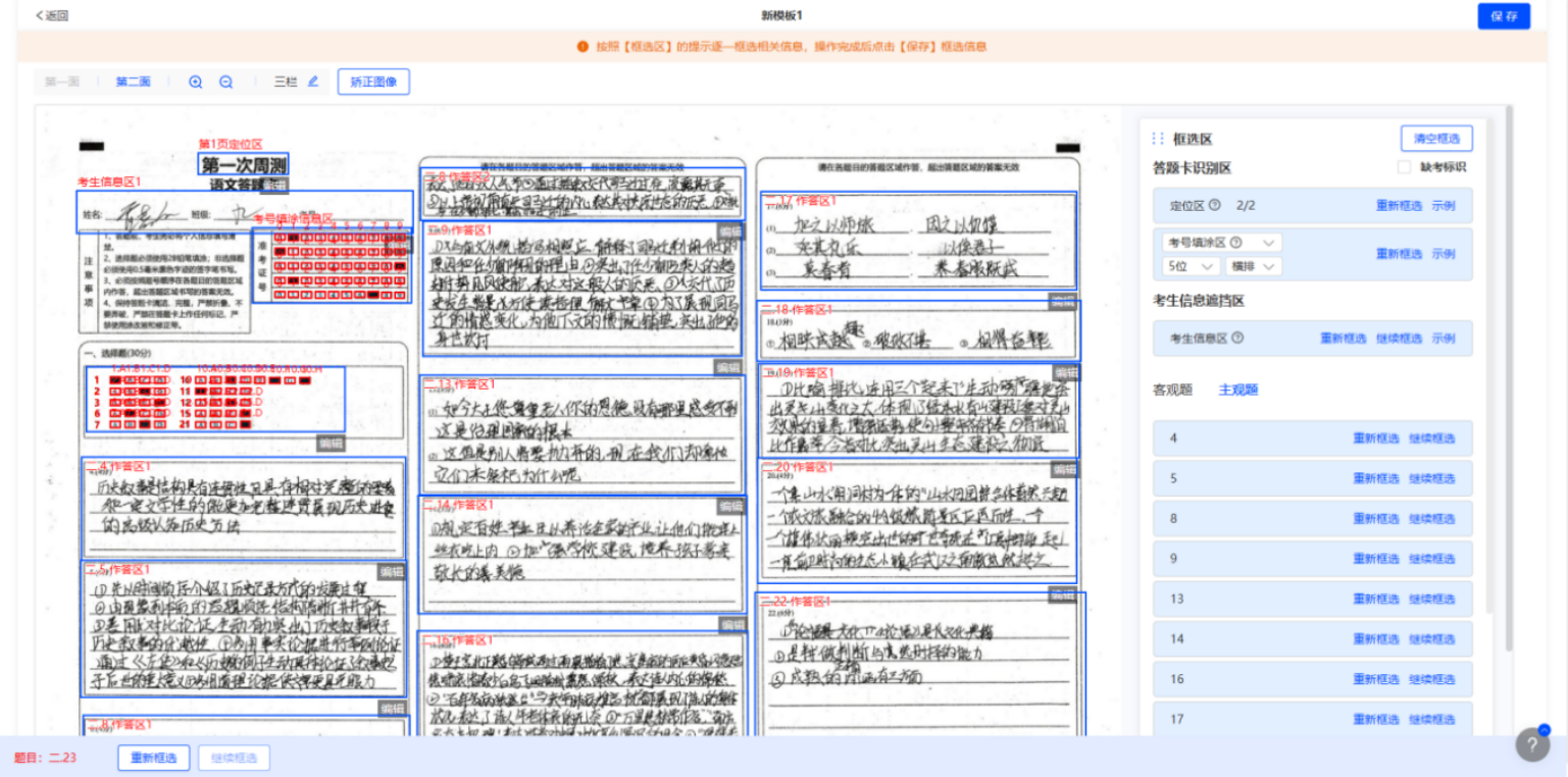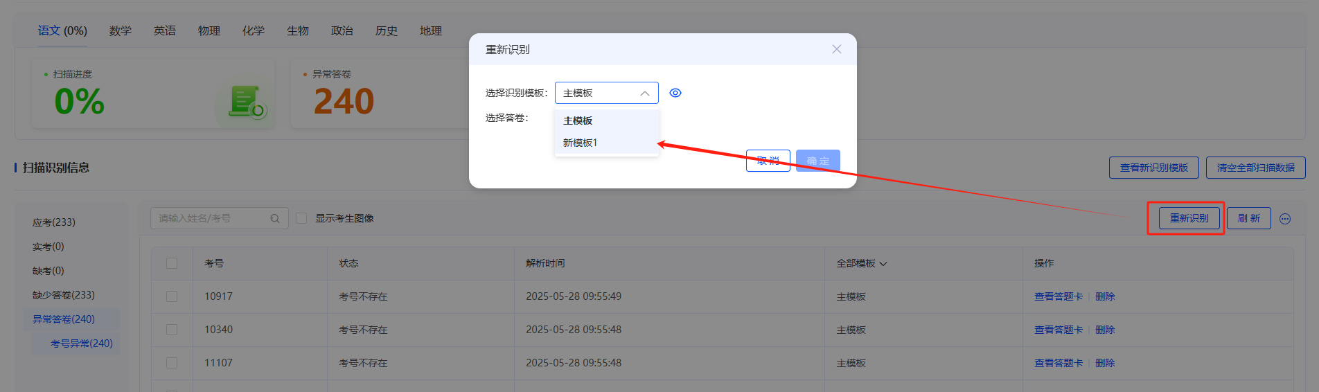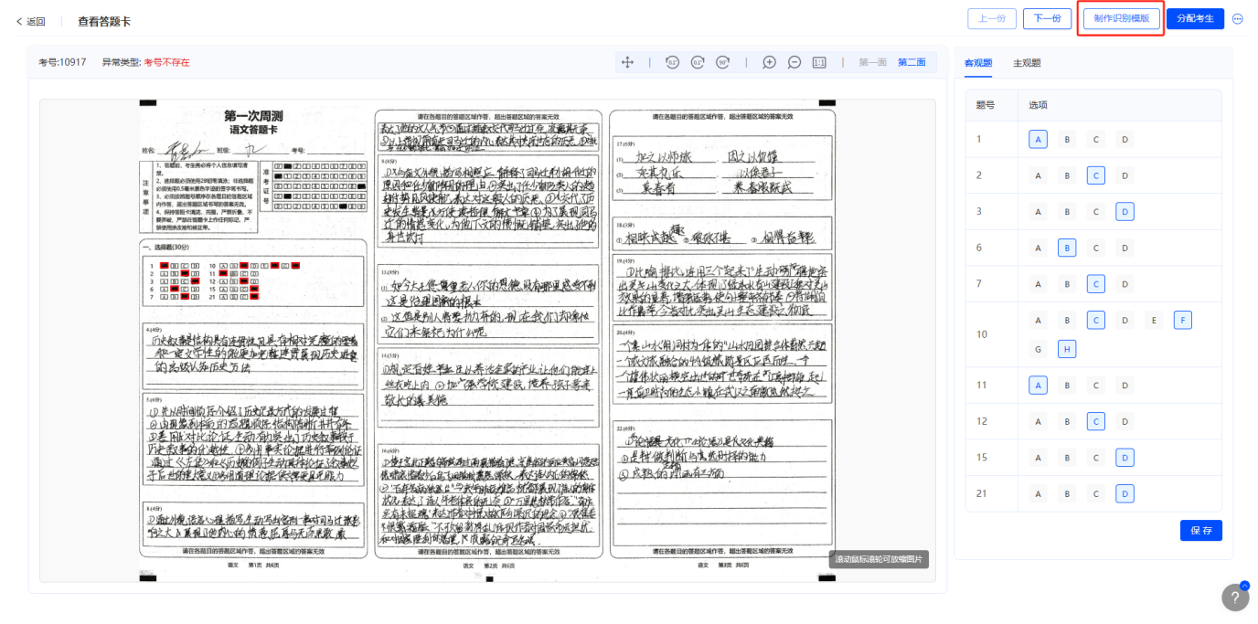 如果因为印刷、成像等问题导致同一场考试的答卷,一部分能正常识别,一部分无法正常识别,可以制作新识别模板用来识别这些异常题卡。