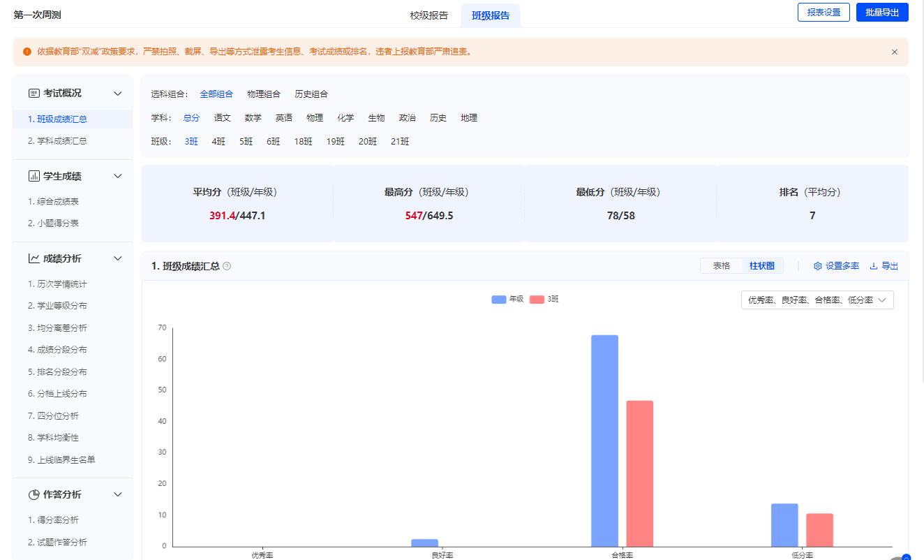 - “管理员”和“校长”可以看到全校所有考试的报表数据;