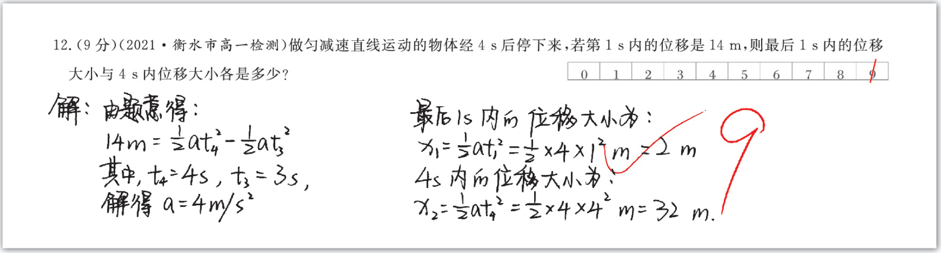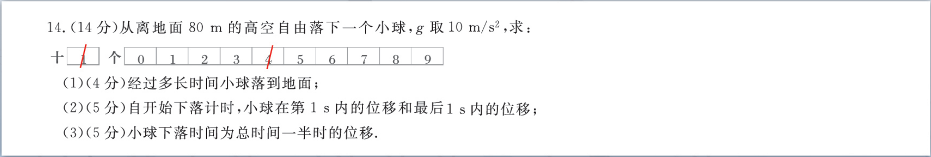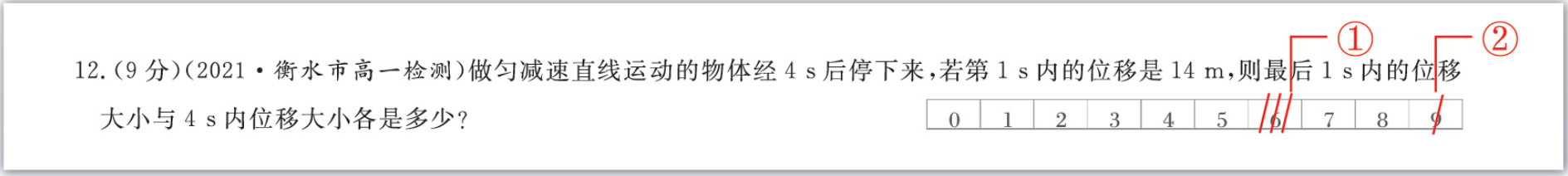 红笔在赋分栏相应位置划线赋分,系统自动采集数据。同时,教师仍可以在学生答题区批注、点评,不改变批阅习惯。【划线赋分要求】:在赋分位置纵向划线,不能横跨两格。【误批重新赋分】:如果第一次赋分有误,只需先在误批位置再加划一条或两条线(如①),后在正确赋分位置再划线(如②)。【两位数赋分规则】:先在十位分数处划线,后在个位分数处划线即可。[如下以得分为14分示例]批阅完纸质版后将作业扫描上传,客观题自动批阅,主观题直接识别打分框上的分数,教师及学生端均可查看到批阅的结果。