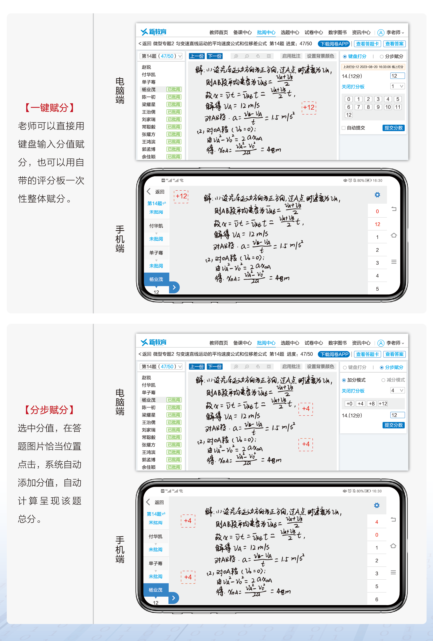 - 线上批改——一键赋分,分步赋分